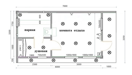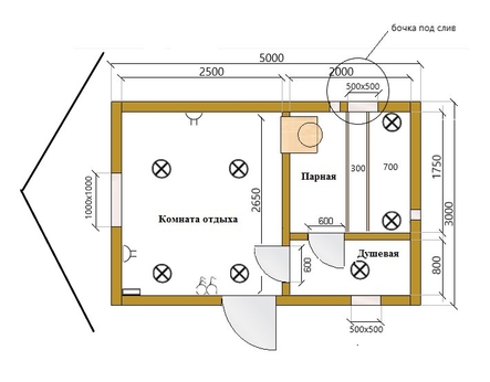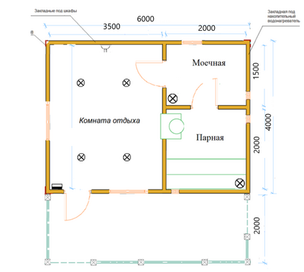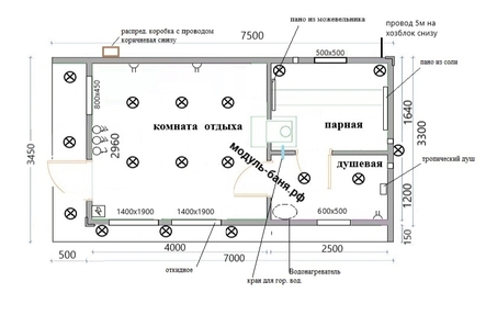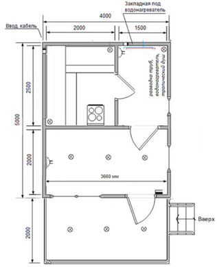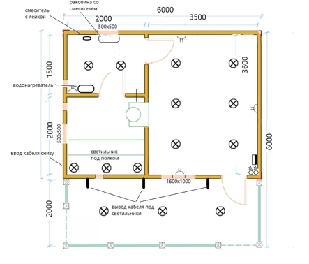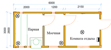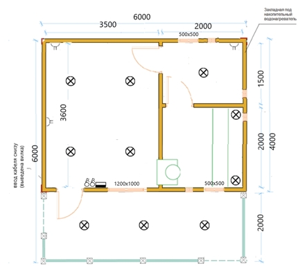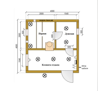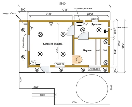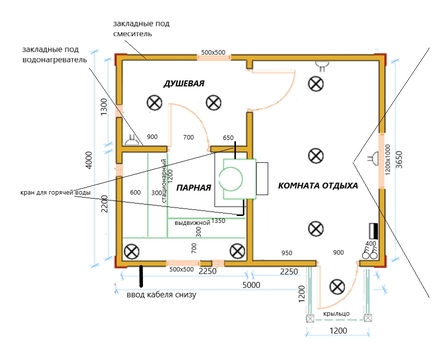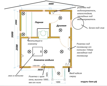 Снаружи выведен провод для моментального подключения бани к электричеству