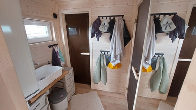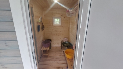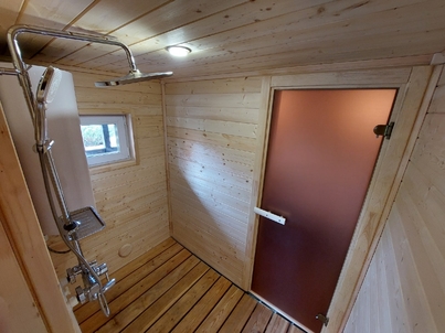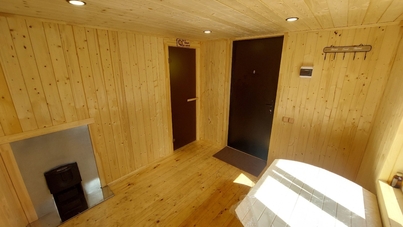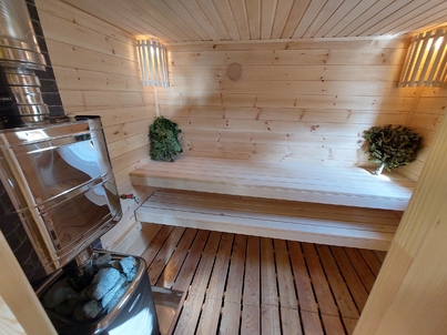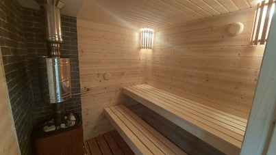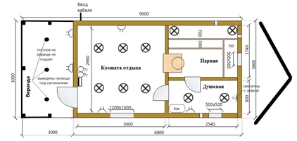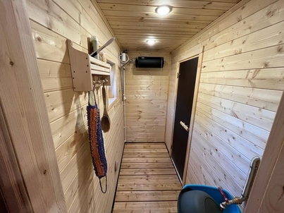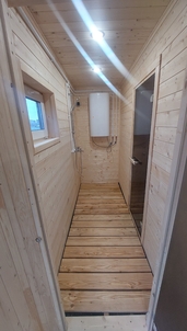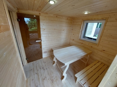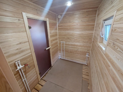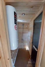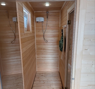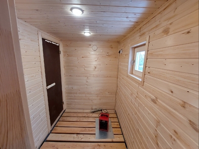 Снаружи выведен провод для моментального подключения бани к электричеству